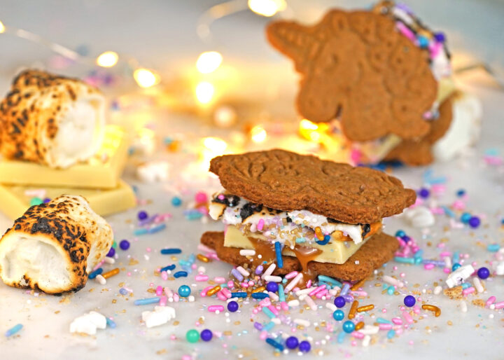 Unicorn Graham Cookie S’mores with Unicorn Sprinkles
